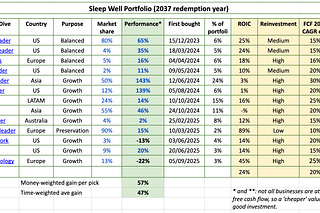 Sleep Well Portfolio (Sep 2025) - 47% annualised return per pick, 2 losers.