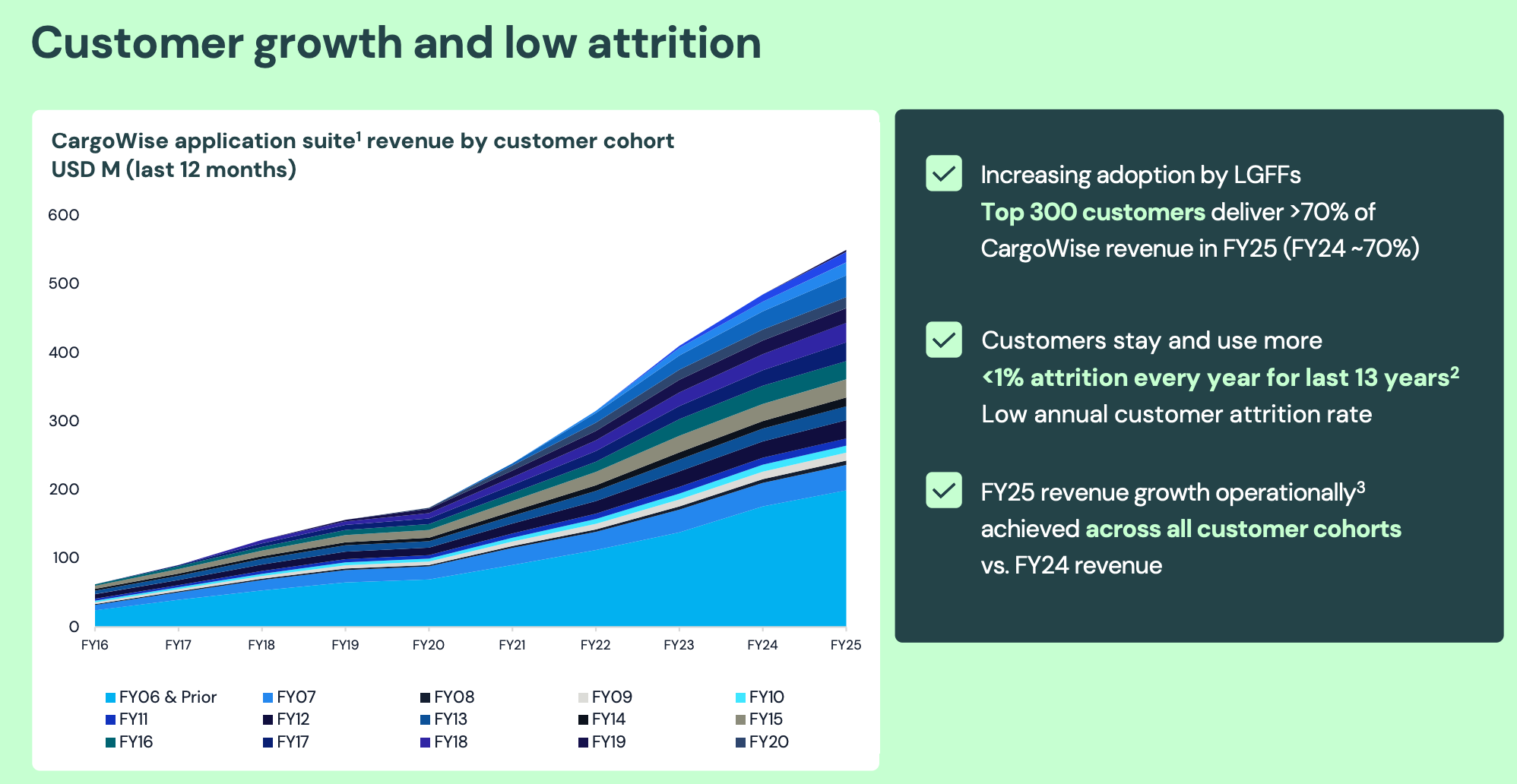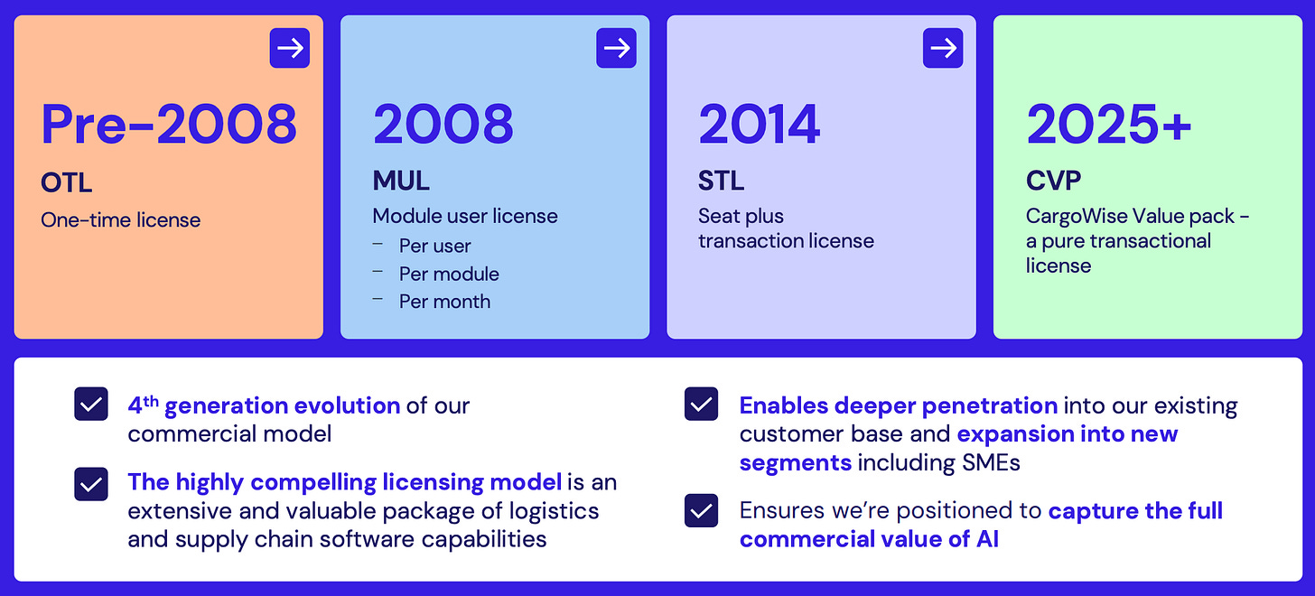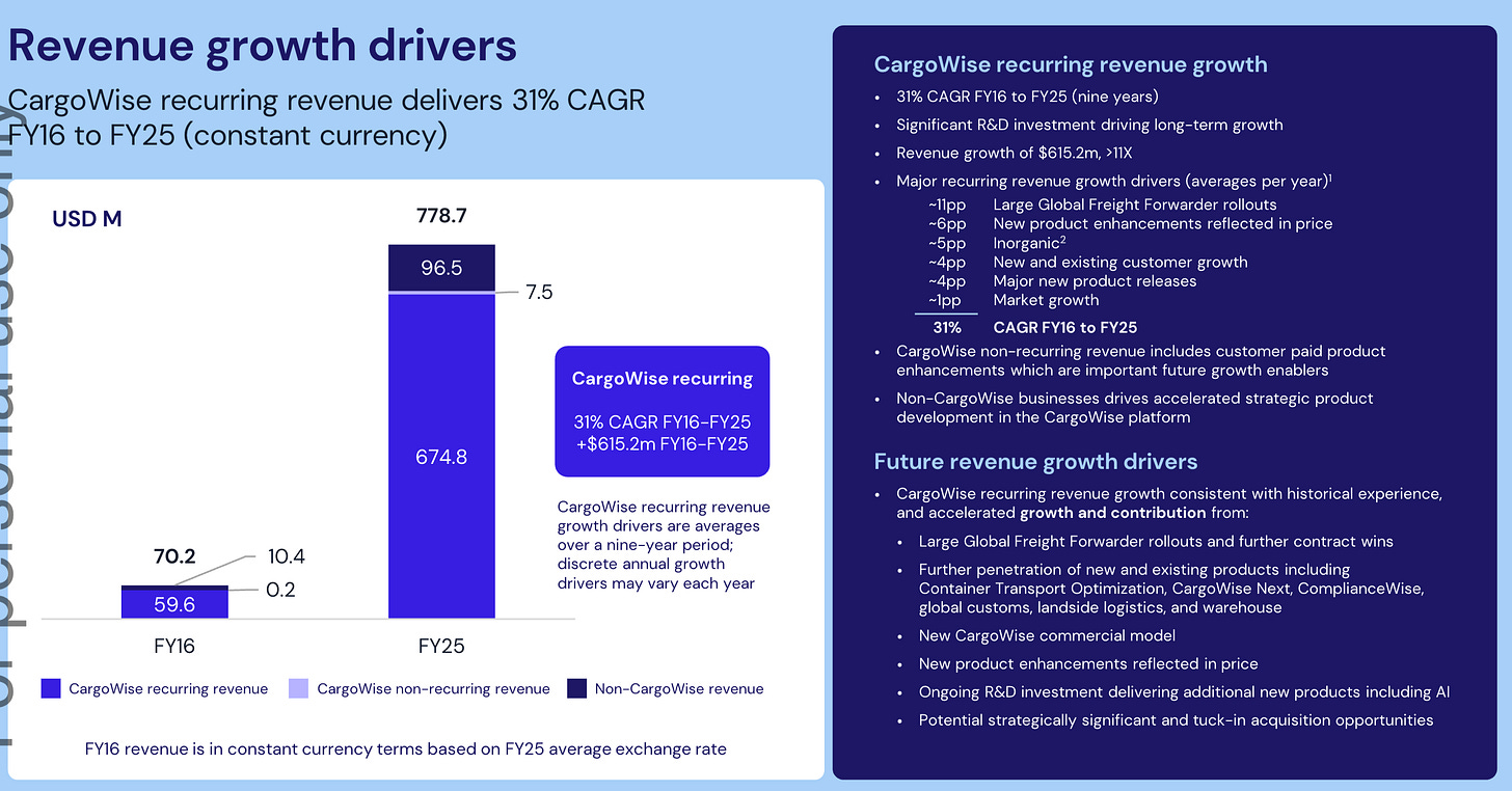 Yes, growth slowed in the last 3 quarters, but instead of losing clients, WTC has continued to onboard large clients, and the last two top 25 LFF wins are going to produce 3x the wins of 2024. They are Nippon Express, a $20B revenue company and the most prominent logistics logo in Japan, which signed CargoWise due to losses from internal software failures, and LOGISTEED, a $6B revenue company with a presence in 100 countries.