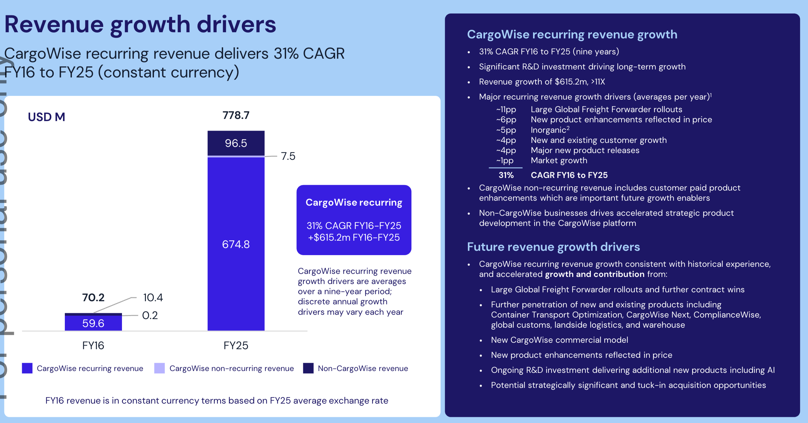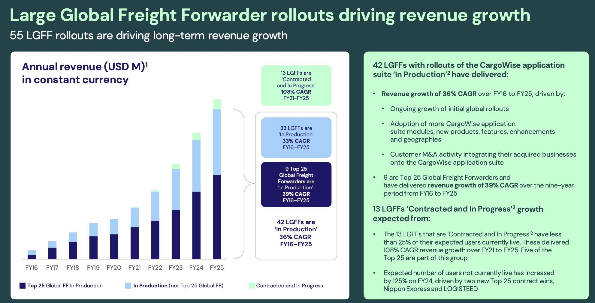 ~10% organic growth from CargoWise's global LFFs rollout, plus
