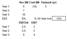 In terms of multiples, we can work out the intrinsic value by applying 5x, 10x, and 15x to the terminal FCF, $1.4B, in the base case. You get a ~$7B, ~$14B, and ~$21B business in ten years, respectively.