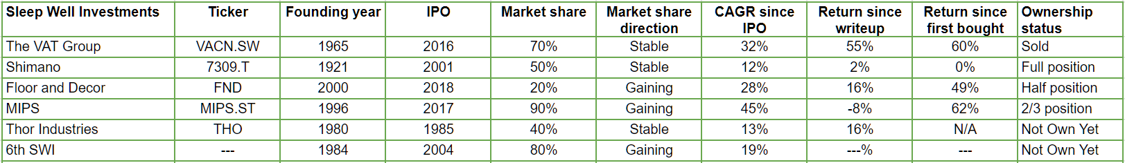 - Shimano - Bike component monopoly +12% CAGR