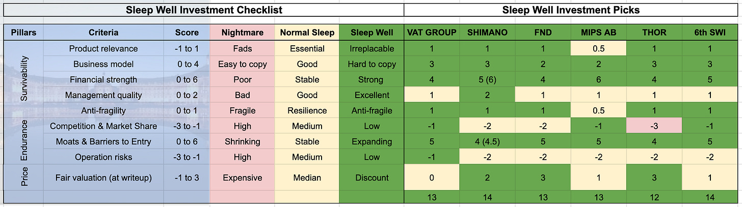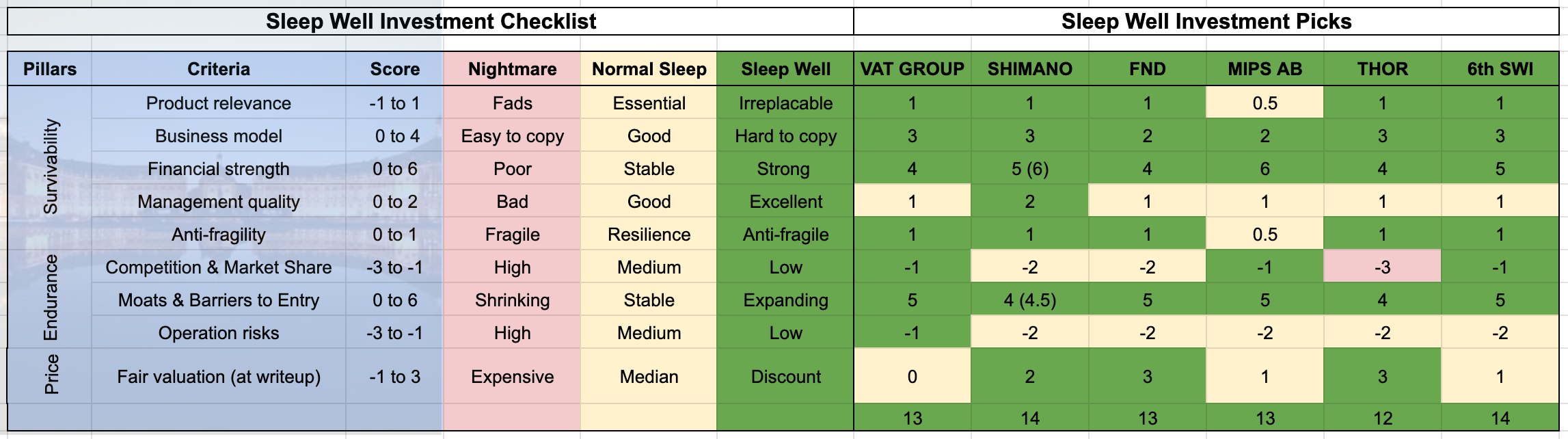Sleep Well Investments Score (Sept 2023)
