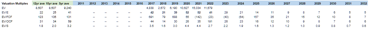 Below are the various multiples from 2017 to 2032 at the base case.