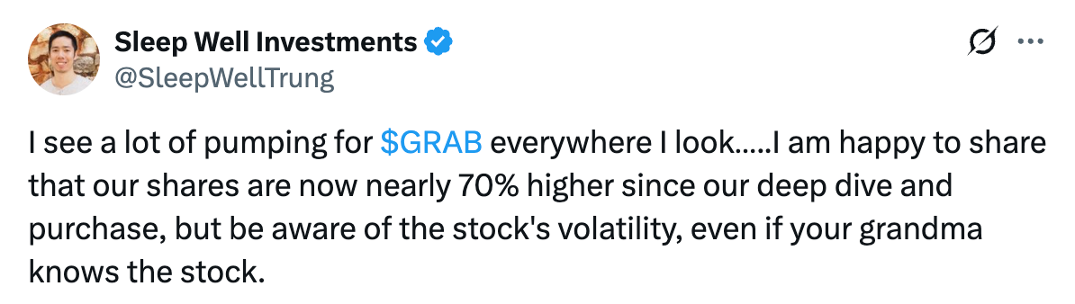 GRAB, a position acquired in October 2024, reported good Q3’25.
