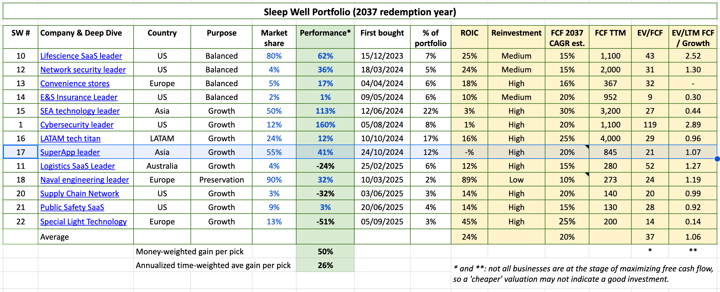 Then we’ll revisit why Sleep Well owns Grab and whether a ~24x free cash flow valuation is attractive/unattractive for the Sleep Well Portfolio.