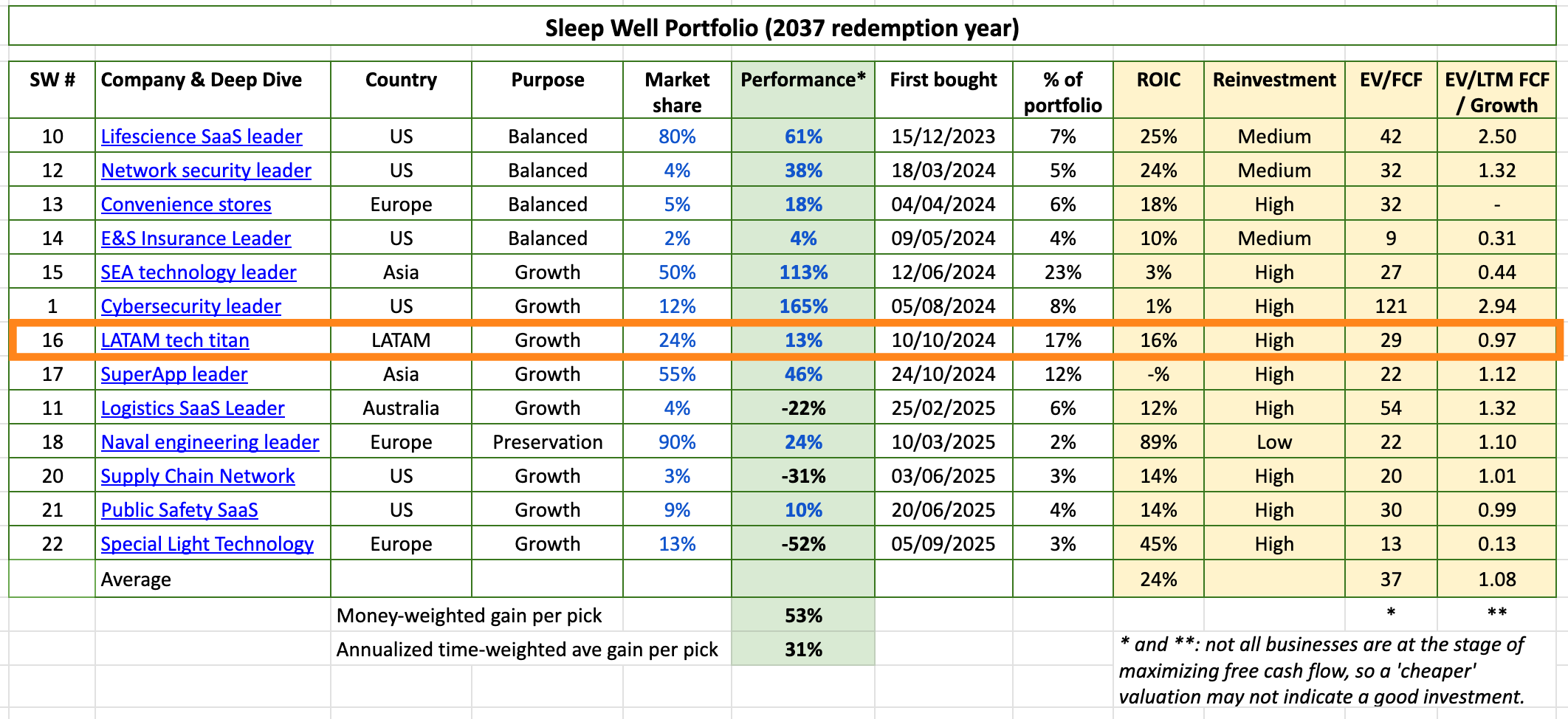 Mercado Libre (MELI), a ~17% position acquired on 24 Oct 2024, is a commerce and technology leader in Latin America.