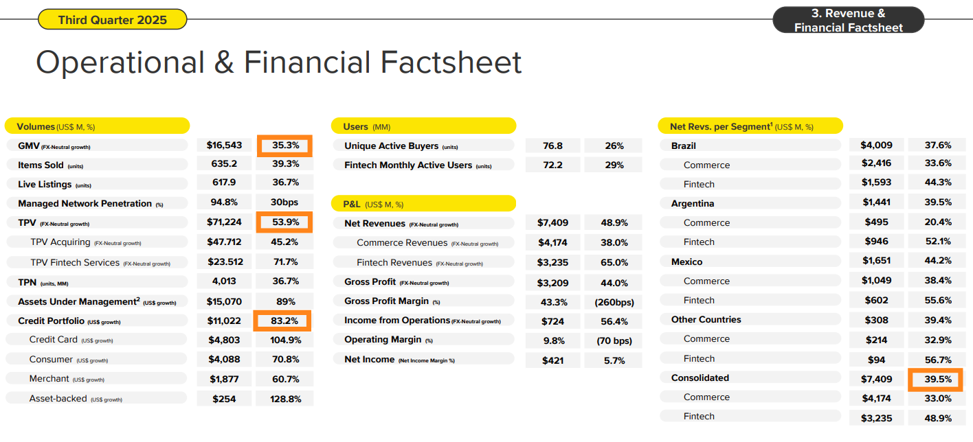 This is Meli’s Q3’25 results. Revenue grew ~40%! – the 27th consecutive quarter of growth above 30% YoY.