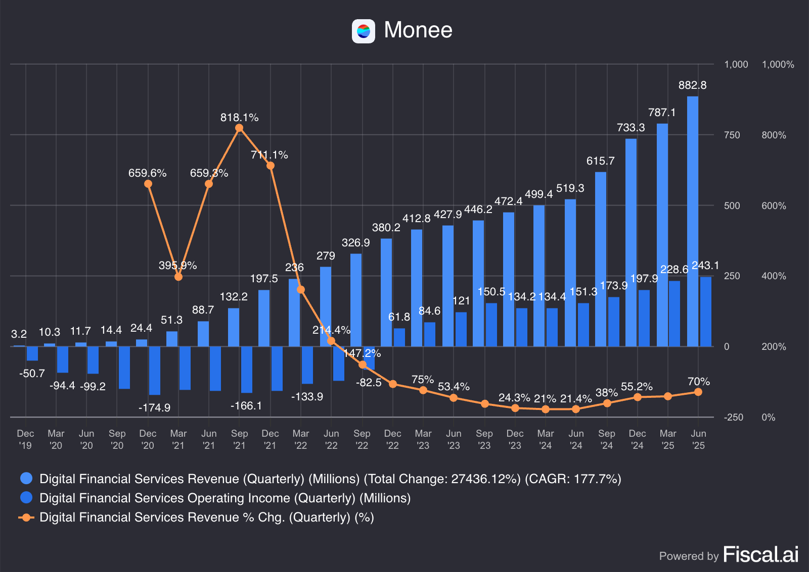 GrabFin’s quarterly revenue was $84M for Q2’25, about 1/10 of Monee’s.