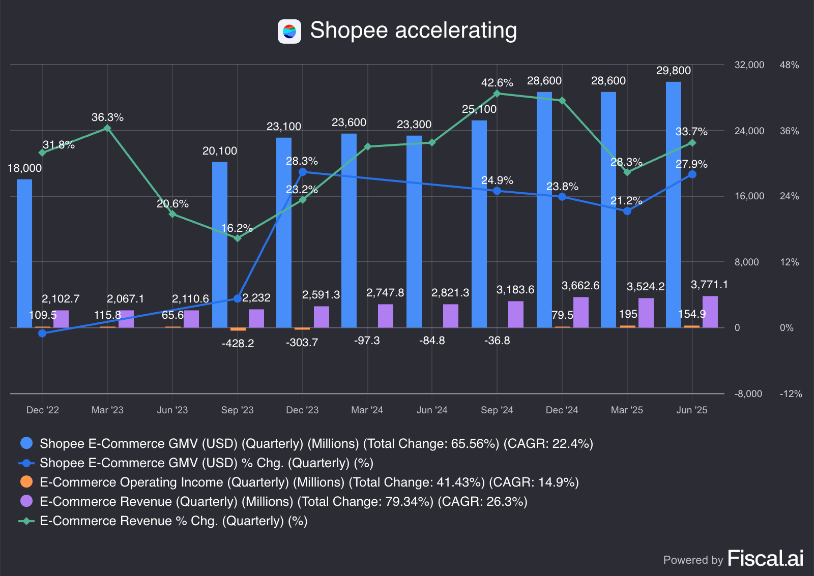 Shopee is now 10 and a half years old (inception date: Feb 2015). Taking out the peak Covid period, Q2’25 marked the 3rd consecutive quarter of positive GAAP income! For almost 10 years, it was a cash-burning segment.