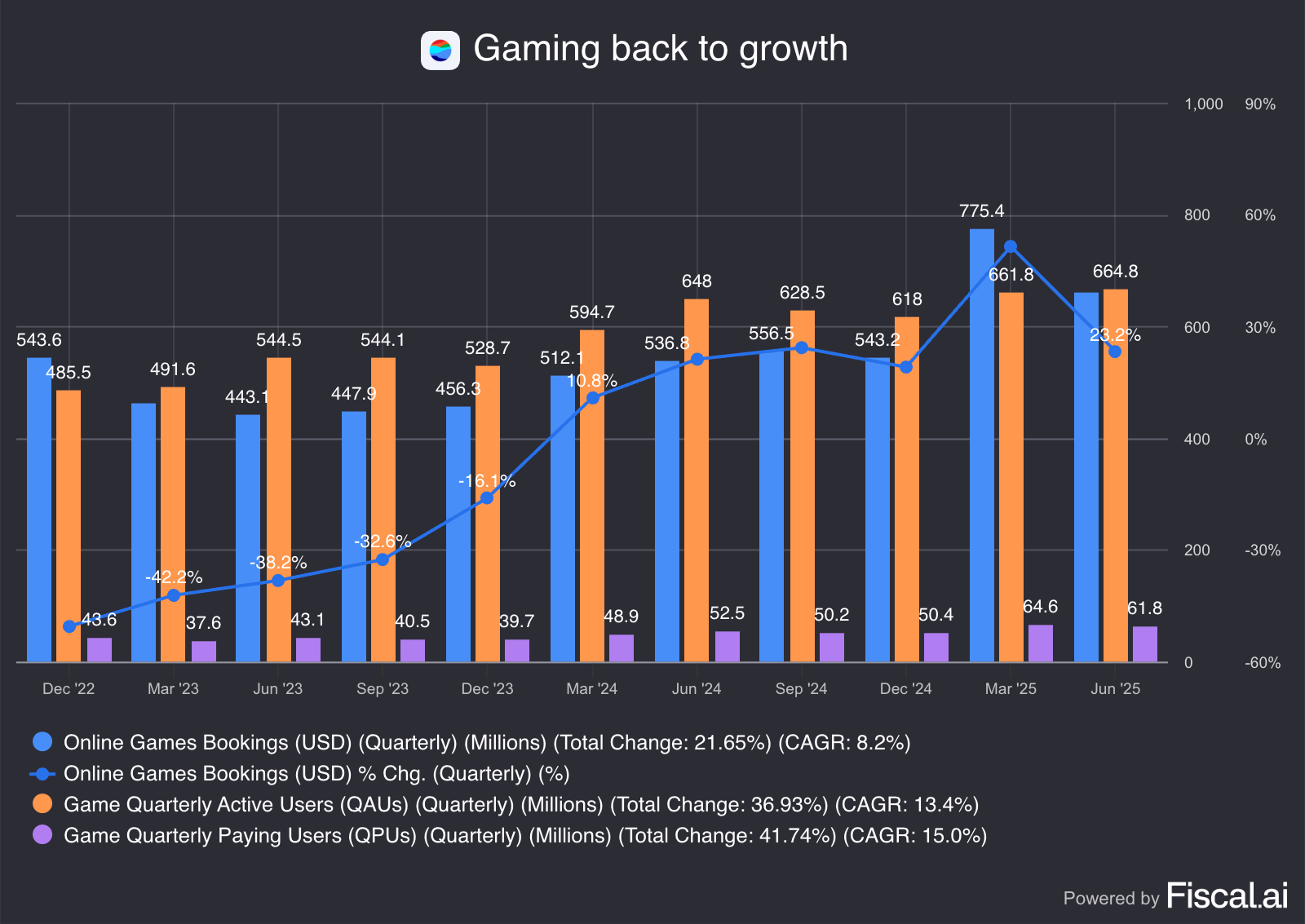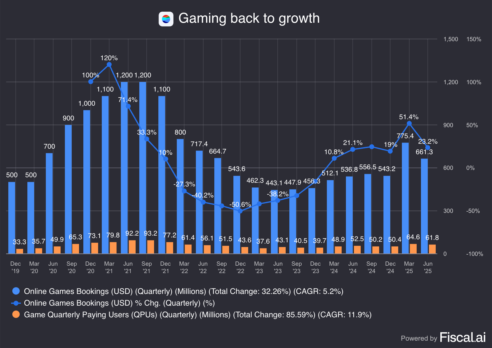 Post-COVID, as gamers took a hike, investors were rightly concerned about whether it would come back to print money for investments in Shopee and Monee reliably. In my deep dive and subsequent updates, we saw that Free Fire, after 8 years, still had multiple levers for growth.