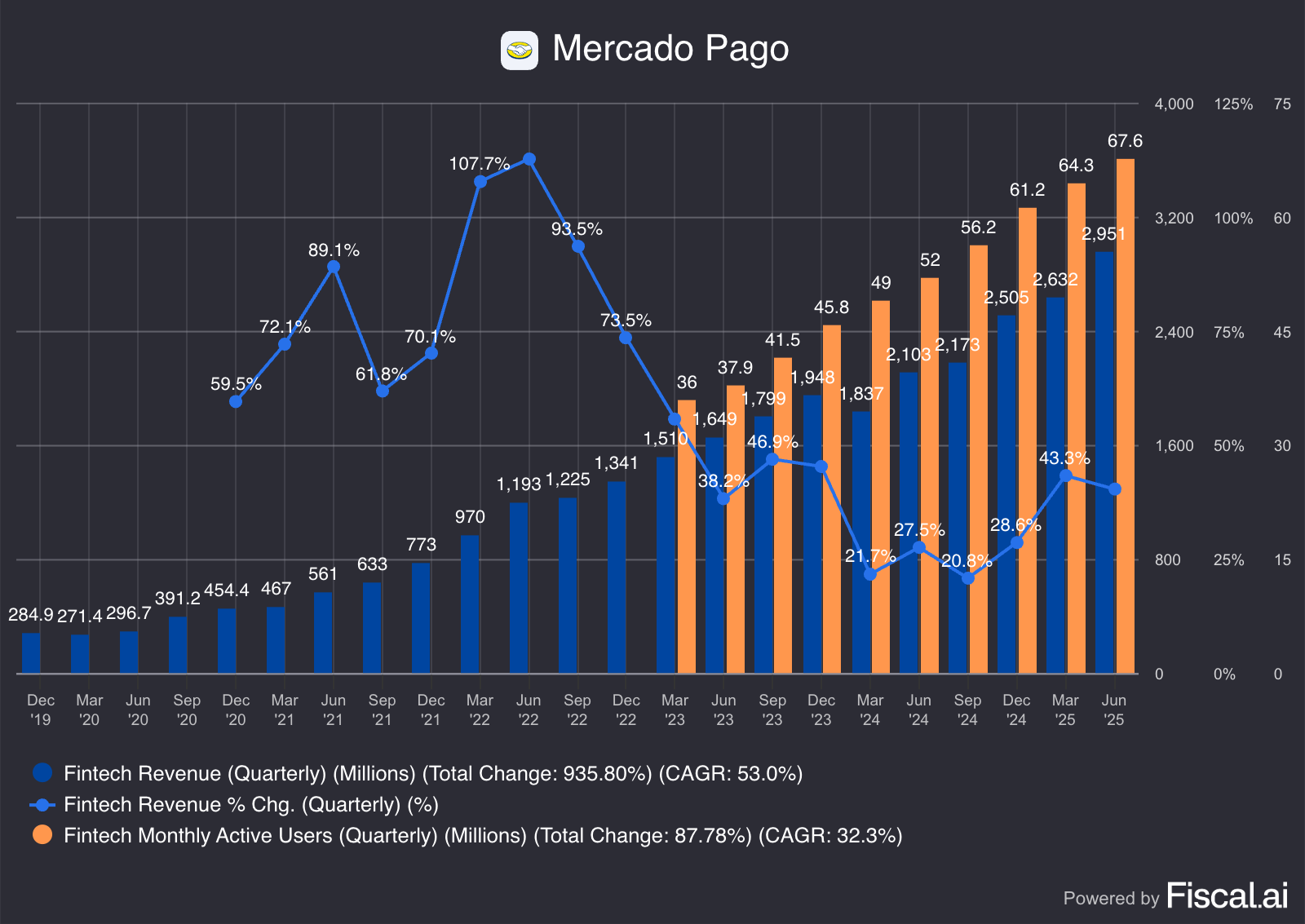 For dreamers out there, Mercado Pago of Mercado Libre was still growing at 32% YoY after more than 20 years of operation. Its quarterly revenue was ~$3B in Q2’25.