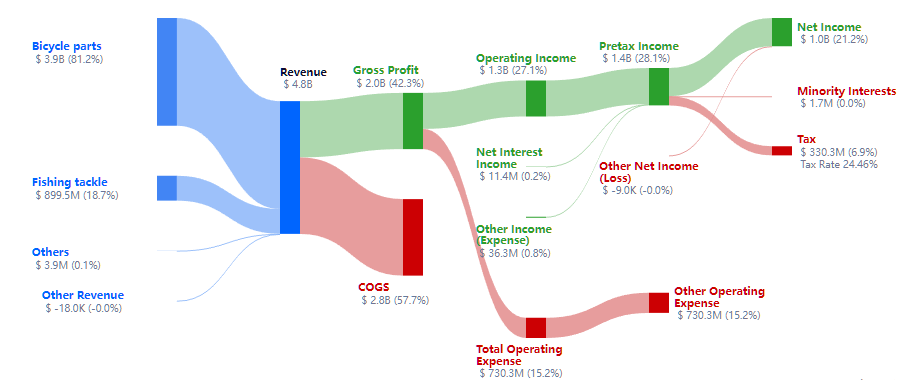 Shimano (7309.T, SMNNY) is the world's largest bike component and second-largest fishing tackle manufacturer, with ~50 percent market share for all parts (~70 percent market share in mid-high-end components). It was founded in 1921 by Shozaburo Shimano in Sakai, Osaka. The company's first product was the single freewheel, and through a century of incremental improvements, it has become the foundational mechanic and the most technical component of bikes today. Impressively, it's still run as a family business at ~$5B in sales and ~$15B market cap (~$12B enterprise value). The grandson, Yozo Shimano is the current CEO, Taizo Shimano is the President (the 5th), and two other Shimano family members as executive directors. The company was listed on the Osaka Securities Exchange in 1972 and has returned 10x since 2000.