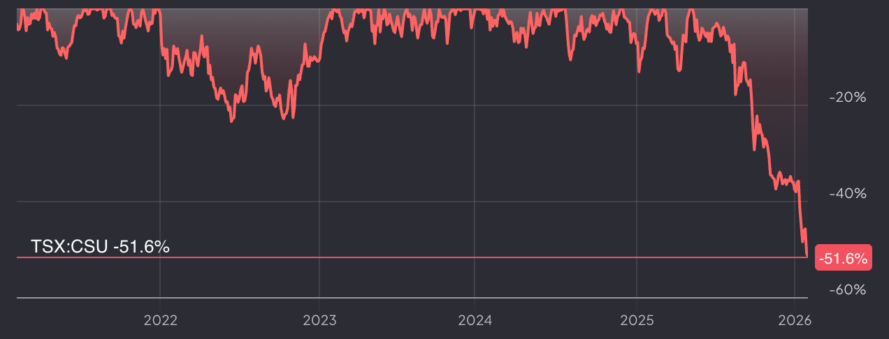 January continued the decline from the end of 2025. Software continued to be sold off amid rising concerns about AI’s disruption. Constellation Software (CSU.TO), the poster child for high-quality software names, fell 52% since June 2025.