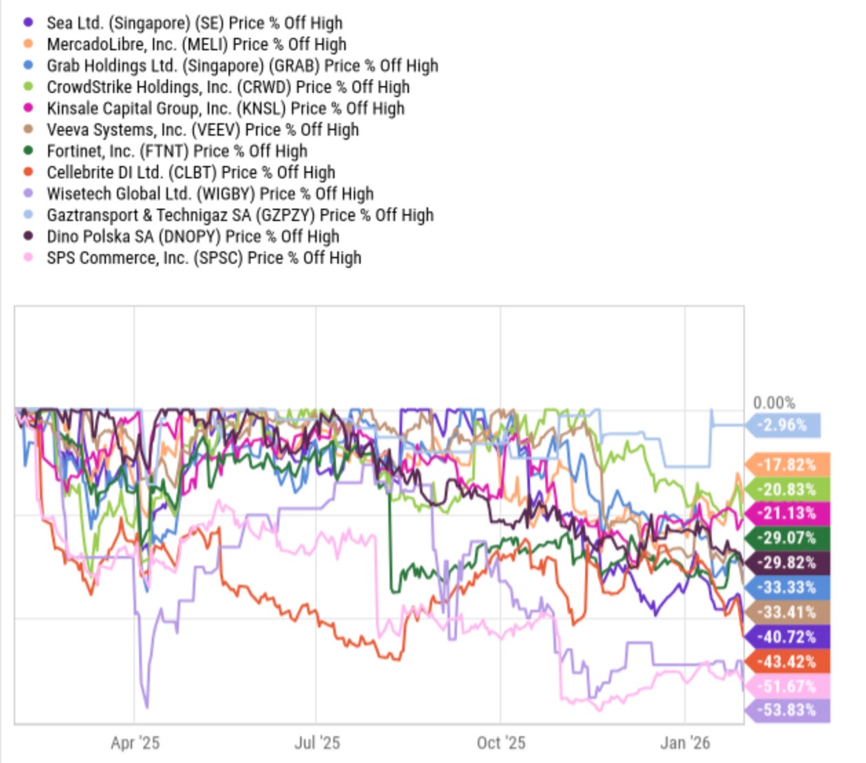 We will continue to own leaders in niches and allocate capital concentrated on a few names. SE, MELI, GRAB, WTC, FTNT, and VEEV are over 70% of the portfolio. When they rebound, it will be spectacular, but in the interim, I will have to stomach the large swings and focus on the fundamentals.