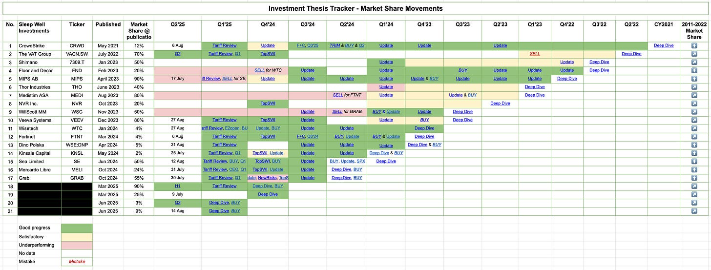 Hi, I am Trung. I own only niche market leaders. They must pass my initial Sleep-well checklist and perform well in my Thesis Tracker to enter the Sleep Well Portfolio, which I am building for my daughters to redeem in 2037. I disclose my reasoning for all BUY and SELL (ideally never). Access all content here.