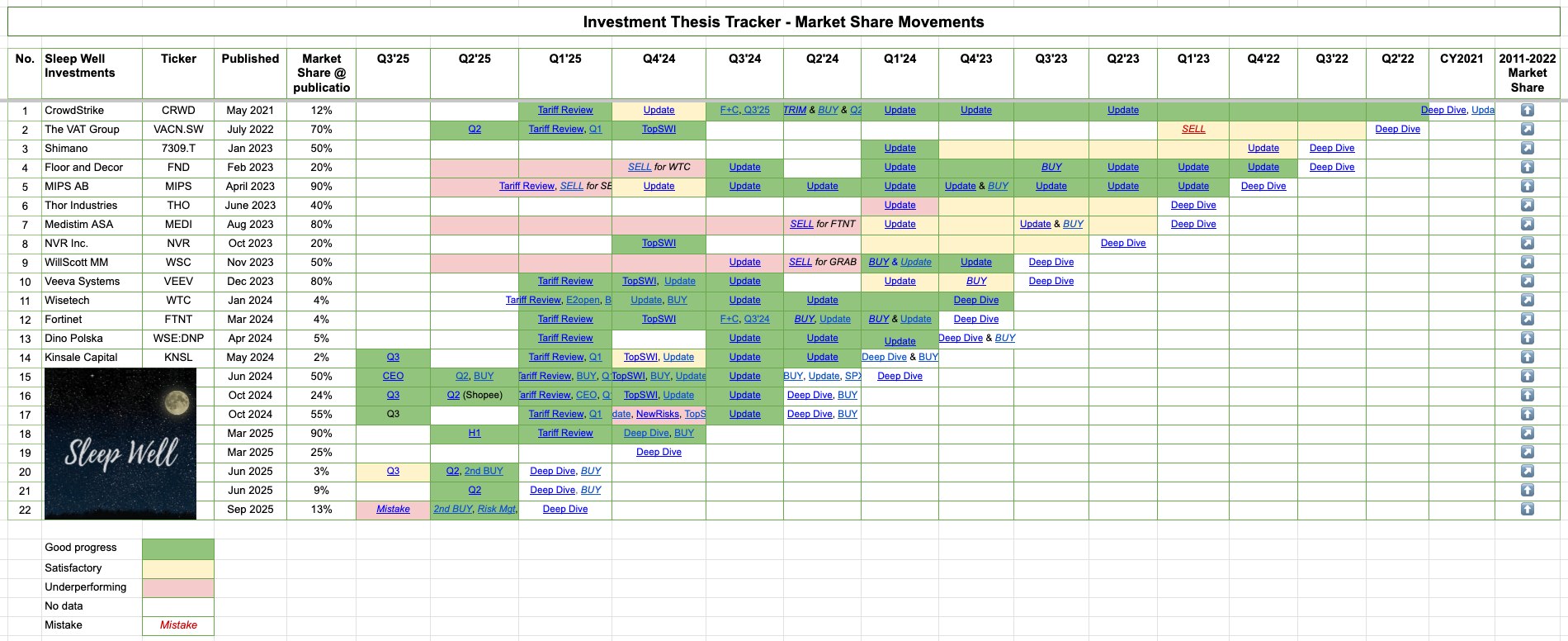 Below are all the business updates (earnings, ad hoc events) and buy/sell reasoning notes for all SWI picks. You can access the tracking sheet in the Sleep Well Portfolio tracking spreadsheet, available to Annual Premium members only - link.