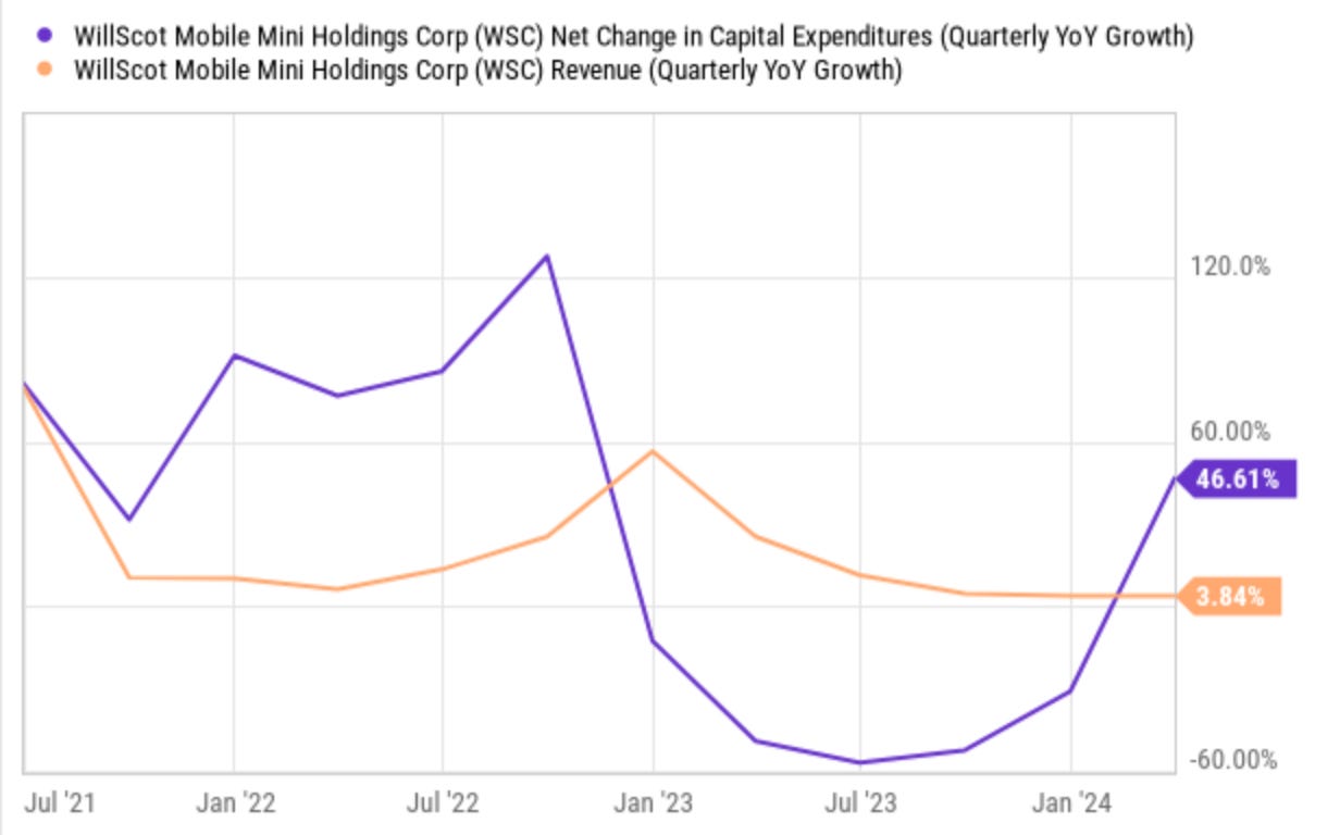 Q1’24 net CAPEX increased 41% YoY to $65M, faster than revenue growth. This was explained by investments in new work orders to support modular activations and new climate-controlled storage units. Without this new investment in anticipation of demand later in the year, CAPEX would often be used to refurbish old units (maintenance CAPEX).