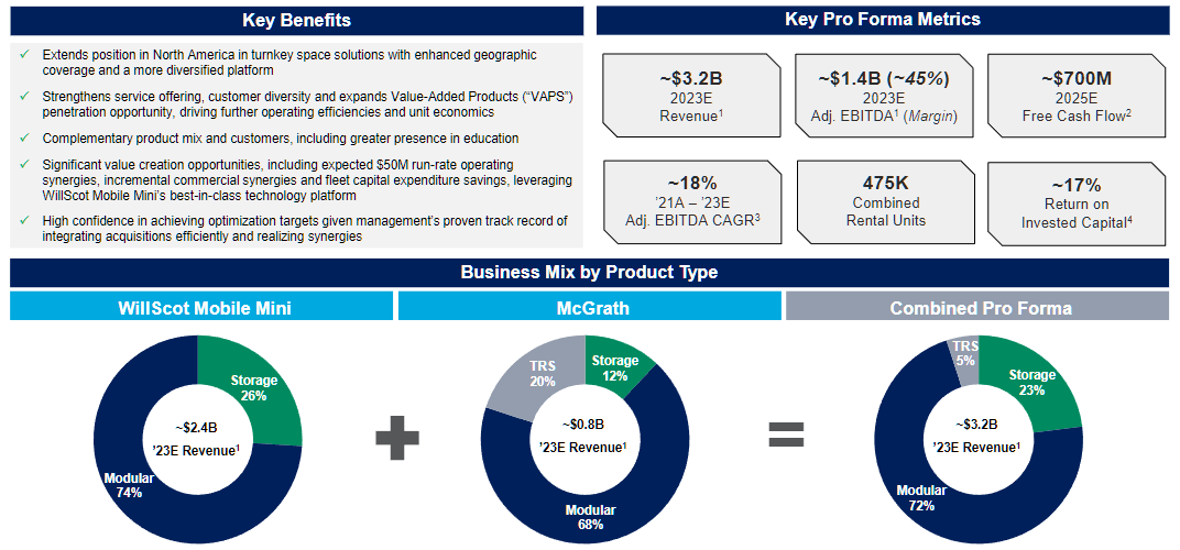 I have analyzed the potential impact of the McGrath deal here, concluding that the most important takeaway is eliminating the biggest competition risk, as WillScot would have gobbled up the second largest player (10% share, 5x smaller than WSC). Financially, there are logical cross-sale and scale advantages to gain.