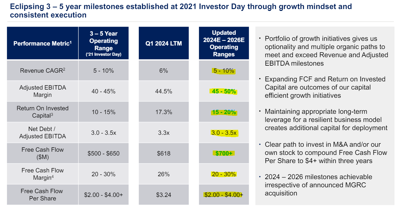 The business has done well since my coverage (Q323, Q423, and Q124). Importantly, my focus is the management guidance that free cash flow per share will reach $4/share between 2025 and 26. However, as I read the conference call and looked at the share price movements, the market is anchored on the short-term quarterly changes of different metrics and the closing of the $3.8B acquisition of McGrath (MGRC).