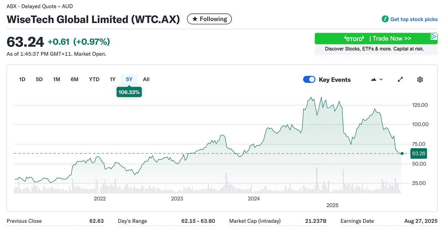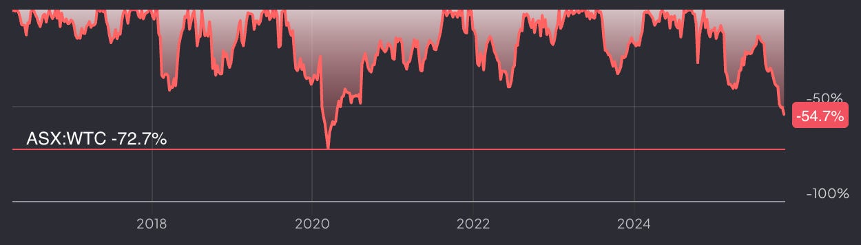 Wisetech, one of the best SaaS companies I get to own, saw shares decline 40% YTD from AUD 100s to AUD 60s, and 55% from AUD 134 peak. Was it self-inflicted?